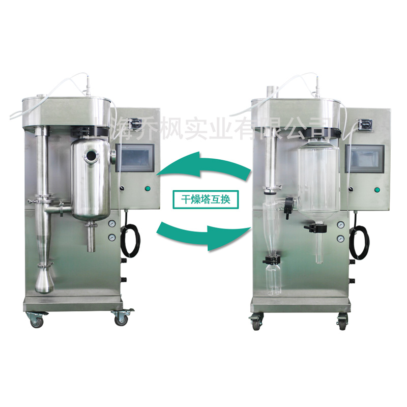 小型 實(shí)驗(yàn)型 微型噴霧干燥機(jī)(噴霧干燥儀/噴霧干燥機(jī))及其主要適用于高校、研究所和食品醫(yī)藥化工企業(yè)實(shí)驗(yàn)室生產(chǎn)微量顆粒粉末,對(duì)所有溶液如乳濁液、懸浮液具有廣譜適用性, 適用于對(duì)熱敏感性物的干燥如生物制品、生物農(nóng)藥、酶制劑等,因所噴出的物料只是在噴成霧狀大小顆粒時(shí)才受到高溫,故只是瞬間受熱,能保持這些活性材料在干燥后仍維持其活性成份不受破壞。二、實(shí)驗(yàn)型噴霧干燥機(jī)特點(diǎn):