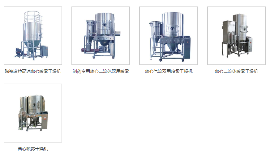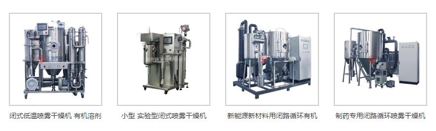 噴霧干燥機型號分別為,普通小型噴霧干燥機、低溫噴霧干燥機、離心噴霧干燥機、閉式噴霧干燥機、噴霧造粒干燥機、氣流噴霧干燥機等等。